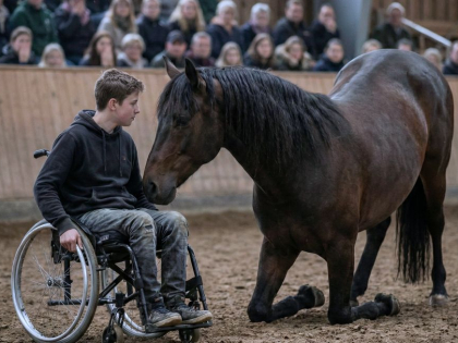 He Wheeled Himself Into the Arena, Shy and Nervous — Then the Wild Stallion Broke Away, Approached Him… and the Next Seconds Moved Every Heart in the Stands