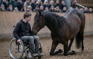 He Wheeled Himself Into the Arena, Shy and Nervous — Then the Wild Stallion Broke Away, Approached Him… and the Next Seconds Moved Every Heart in the Stands