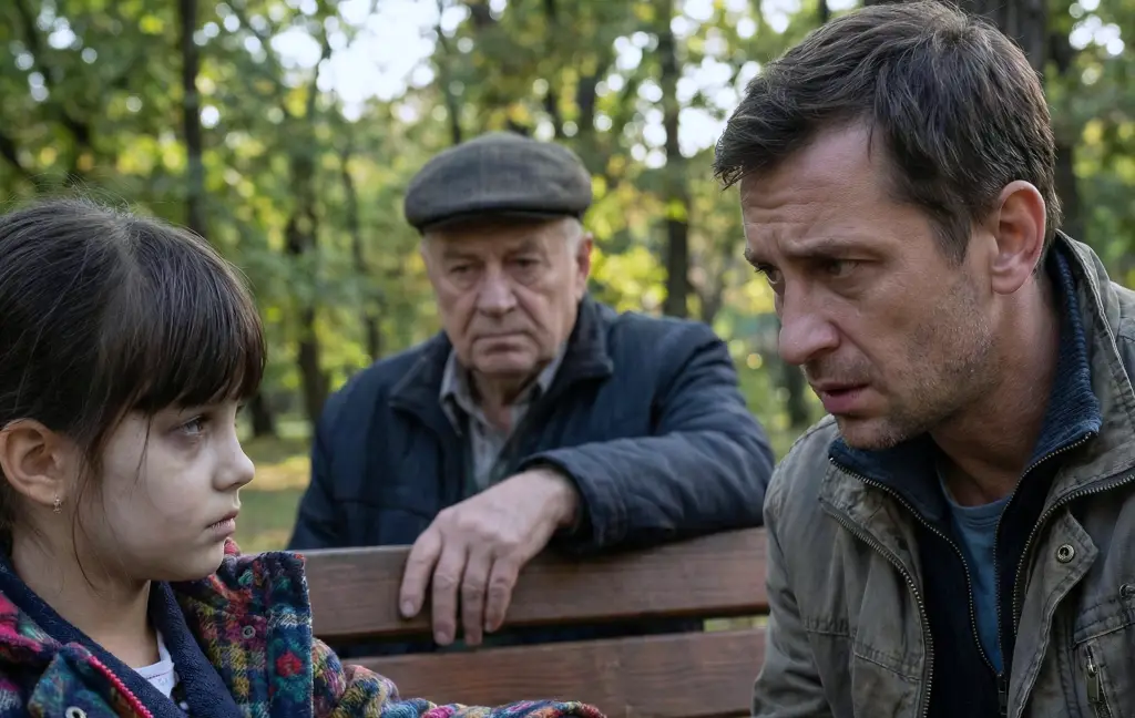 The man was quiet for a moment. His eyes were still on Mia as she slid down the slide. Then he leaned forward slightly, his voice dropping.